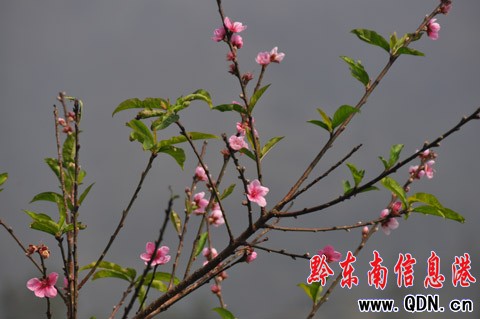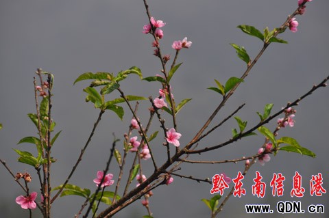 本港訊 (記者 李麗娟 攝影報道)10月23日,記者在位于雷公山腹地的雷山縣方祥鄉陡寨村看到,幾株桃樹上的桃花競相綻放,綠葉襯托著一朵朵紅花十分美艷。而時下正是金秋十月,我們卻能欣賞到桃花掛滿枝頭的美景,實屬罕見。