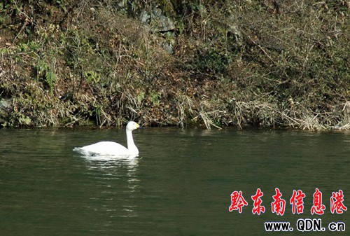 據雷公山自然保護區的工作人員說,在雷山縣城觀測到這只國家鳥類瀕危物種的珍貴水鳥,尚屬首次與雷山縣城的環境及動植物資源得到有效保護有關,使得天鵝在這里停留。