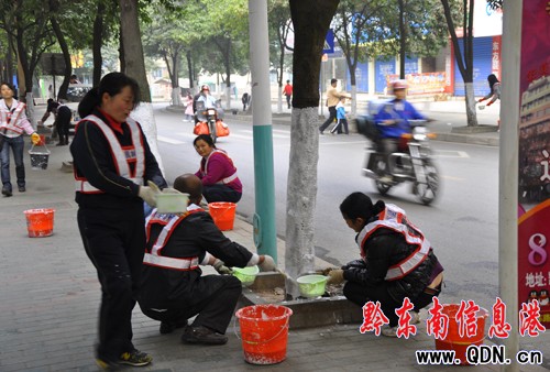 今日一早,記者在永華路七小附近聽到稀里嘩啦的聲音,有說有笑,他(她)們是在做什么呢?這么熱鬧!記者上前詢問,才知道他們原來是凱里市園林工作者,他們或兩人一組或三人一組正在樹旁忙碌著!“今天星期六怎么還要忙啊?”記者問到,一工作者向記者介紹,今年入秋以來,由于冷空氣的影響,天氣變得時冷時熱,雖然今天是星球六,但為了保護綠化樹的健康成長,我們必須提前為綠化樹“添衣加暖”,節、假日也是如此。