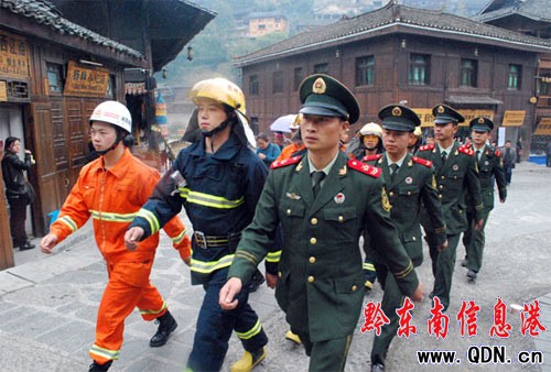 在保衛工作中,參加保衛的70余名官兵在支隊領導的組織指揮下,嚴守紀律,服從命令,聽從指揮,恪盡職守,儀表端莊,文明執法,熱情服務,在長達5天5夜的執勤保衛工作中,沒有一個叫苦、叫累,始終堅持標準不降低、服務水平不降低,尤其是“鼓藏節”之夜,雷山西江群眾為慶祝十三年一遇的隆重節日,大量燃放煙花爆竹,消防安全保衛任務異常艱巨!參戰官兵團結一致、齊心協力,發揚連續作戰、不怕疲勞的精神,在四十余個執勤點上死看死守,用實際行動確保了“鼓藏節”之夜消防安全。總隊領導、州局黨委對保衛工作非常重視,總隊防火部譚效東部長、州公安局溫貴欽局長在保衛期間,親率工作組深入一線檢查指導保衛工作,并親切慰問一線保衛的消防官兵,極大地鼓舞了全體執官兵。官兵們認真履職,嚴格落實保衛方案,圓滿完成了“開幕式“、“祭鼓演繹”、“大巡游”、“沸騰雷山夜”等現場消防安全保衛任務,為雷山“苗年”暨“鼓藏節”的成功舉辦作出了突出貢獻。