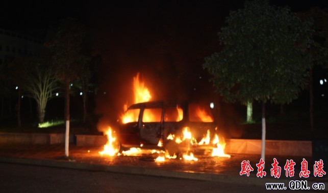 本港訊 (羅茜 蔣偉)11月20日凌晨1時(shí)30分左右,停放在凱里民族體育場附近的一輛面包車突然自燃,幾分鐘內(nèi)整輛車就變成了“火車”,火光沖天。事發(fā)后,有市民報(bào)警,凱里消防官兵立即趕赴現(xiàn)場救援,經(jīng)過20多分鐘的努力,大火被撲滅,不過,車輛已被燒成了“光架架”。目前,此事還在調(diào)查處理中。
