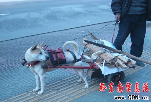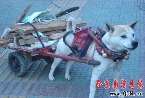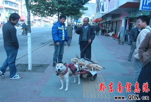 凱里:土狗街頭拉貨物引路人圍觀(圖)