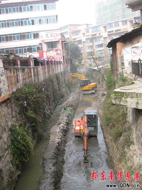 本港訊 (記者 李麗娟 攝影報道)整治金井河一直是凱里市政府改善凱里居住環境的一項重大舉措,深受廣大市民擁護。12月2日,記者在韶山南路金井河看到,兩輛工程車正在對該河進行污水吸收處理。通過吸收處理,原來的金井河發生了變化,比以前寬了,河床變得干凈了,河水也慢慢變清了。