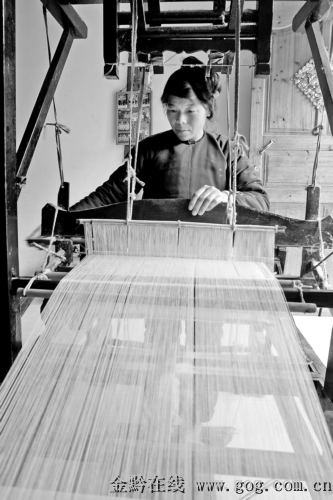 付鳳吉在織布做新衣。