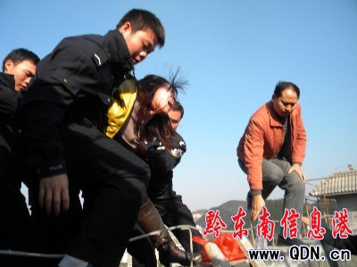 凱里一中隊官兵以最快時間趕赴現場后,立即與楊先剛副教導員商議救援方案,同時鋪設救生氣墊。楊先剛副教導員利用輕生女子注視鋪設救生氣墊的間隙,果斷決策,指揮消防官兵和輕生女子前夫,以最快速度沖到輕生女子身后,拉住輕生女子,將其轉運至安全場所交付給家人,圓滿完成施救任務。