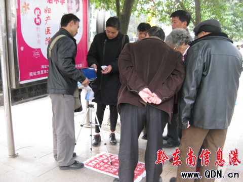 王小姐對記者說,當(dāng)天下午,她正往萬博方向去辦事,走在岔路口,看見一個30來歲的中年男子支著一個三腳架,上面架著一個10英寸大的液晶電視,正用一個像拇指長短的所謂的電子接收器向路人演示,該產(chǎn)品可以在不用裝鍋蓋,不用拉閉路,不用裝天線的情況下就可以收到幾十個臺。很多市民看到演示,也停下了匆忙的腳步。