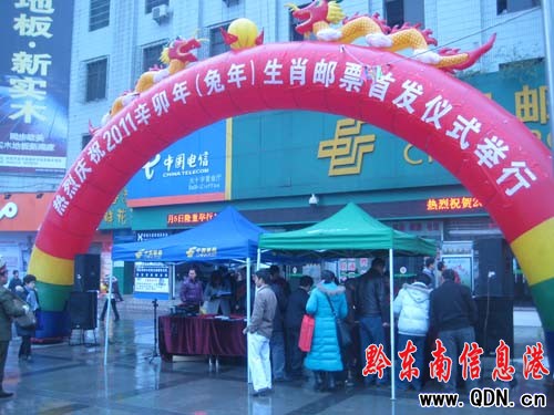 1月5日早上,凱里市郵政局在大十字自家門前擺攤、設點,熱烈慶祝“2011年辛卯年(兔年)生肖郵票首發儀式”活動,并退換老郵票,吸引了眾多市民的目光。