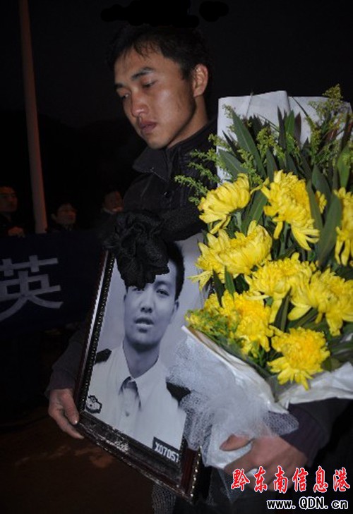 朱清的父親朱老東一臉悲痛的表情,但他強忍悲痛,沒有哭出聲音;朱清的弟弟朱貴抱著哥哥的遺像和一束淡雅的菊花。人們看到,朱清的遺像面帶微笑,在菊花襯托之下顯得英俊瀟灑。“這樣的小伙,怎么說走就走了?”朱清的叔叔朱景榮怎么也想不明白。