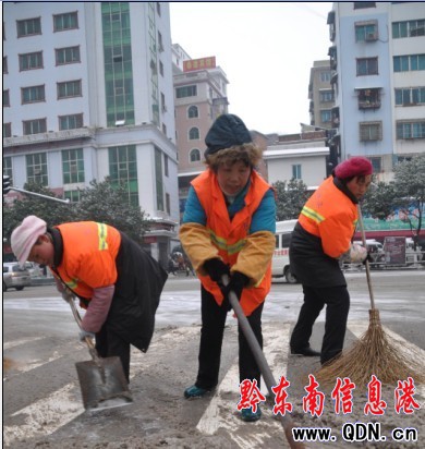 1月17日至18日,凱里地區(qū)普降大雪,造成凱里市道路交通受阻,給廣大市民帶來出行不便。1月18日上午,凱里市緊急組織了全市干部職工以及武警消防官兵10000多人在大十字、營盤坡、凱運司、市行政中心等重要交通地段除冰掃雪,確保了道路暢通和行車行人安全。 (羅茜 宋峰)