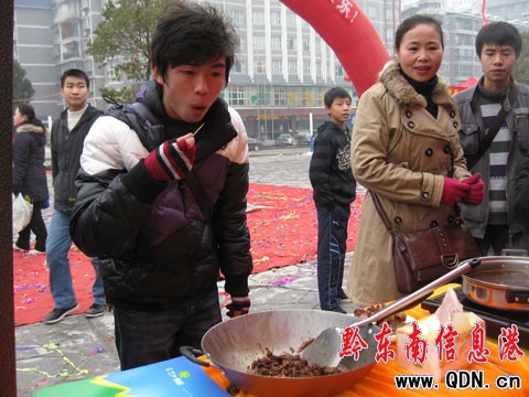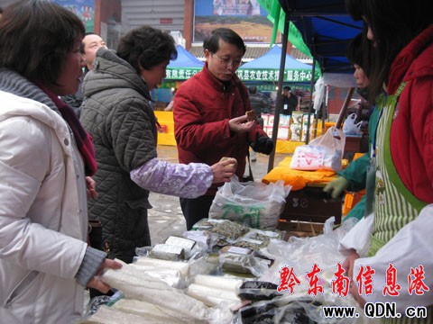 1月23日上午,為進(jìn)一步展示我州生態(tài)特色優(yōu)勢農(nóng)產(chǎn)品和農(nóng)業(yè)產(chǎn)業(yè)化經(jīng)營發(fā)展成果,豐富全州人民春節(jié)年貨和穩(wěn)定春節(jié)期間的農(nóng)產(chǎn)品價格。“2011黔東南生態(tài)特色優(yōu)勢農(nóng)產(chǎn)品年貨周活動”在體育館舉行,活動截止至25號。此次年貨周活動,共有來自十六個縣市近40余家企業(yè)參加,豐富的農(nóng)產(chǎn)品當(dāng)天上午就吸引了不少市民前來選購。