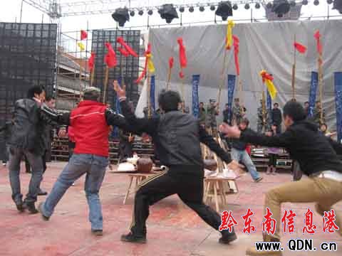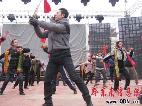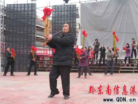 2月18日,距離"貴州東昇"2011中國•凱里甘囊香國際蘆笙節(jié)開幕只有兩天的時間,此次甘囊香蘆笙節(jié)開幕式將在凱里萬博廣場舉行,目前舞臺已經(jīng)搭建完畢,燈光,音響也在一次次試效果,以求達到最好。當天,記者看到開幕式的演員們正在一次次反復彩排,歌舞表演,蘆笙獨奏,甘囊香活動之起堂開節(jié)儀式等豐富多彩的節(jié)目吸引了不少市民駐足觀看。