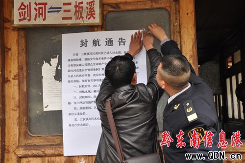 3月4日,劍河縣地方海事處對柳川至革東段水域發出禁航通告。