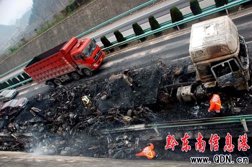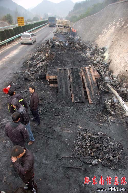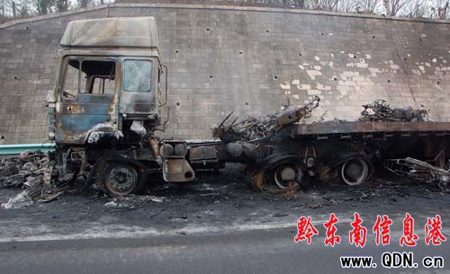 大貨車自燃 百萬元物資毀于火海(圖)