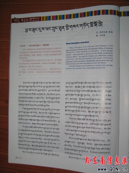 去年,王中軍同志在工作之余搞些鉆研,發(fā)明了減壓水果籃和透明式閘刀開關,并獲得國家專利,引起了《布達拉》雜志社的注意。今年第2期的《布達拉》雜志以《王中軍:一件小事啟迪了一項發(fā)明》一文了報道了他的專利事跡,讓他的名字漂到了海外,也讓從來沒有登上布達拉宮的他似乎登上了布達拉宮。
