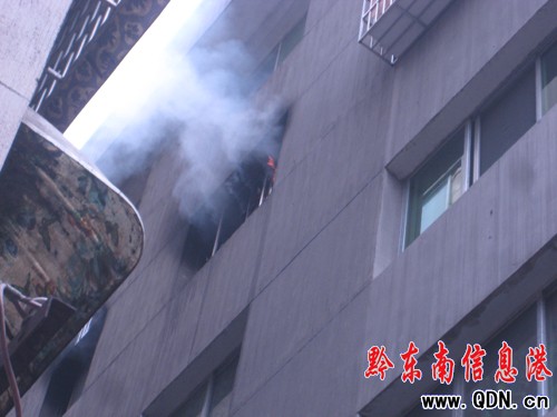 洗馬河一民房起火 消防官兵連接水帶救火(圖)
