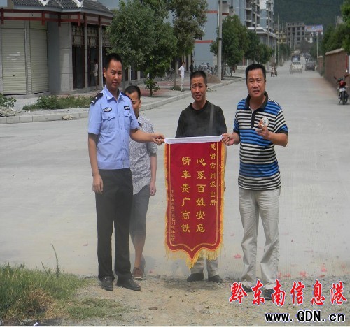 經初審,犯罪嫌疑人叫石某,男,15歲,其供認了8月17日上午在中鐵五局貴廣快速鐵路“川味濃餐館”內盜竊2300元現金犯罪事實。案件成功告破,從發案到破案僅用12小時。當民警將被盜的2300元現金送到受害人姚某某手中時,姚某某感謝萬分,8月25日還親自向古州派出所送來寫著“心系百姓安危,情牽貴廣高鐵”的錦旗。(楊再燦)