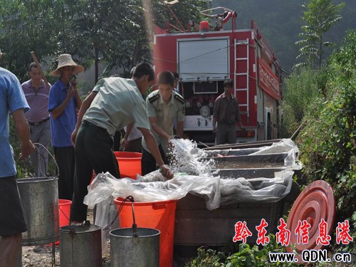 在此次送水16噸,緩解當地1000余名群眾的飲水問題。(柳文龍 葉程 張金才)