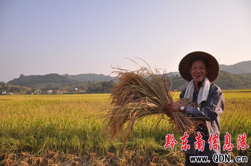“共產(chǎn)黨、毛主席給了我們的幸福,自從修了水利后,整個(gè)壩子從不干過,今年照樣水汪汪的,稻谷笑彎了頭。他共種有5.6畝水稻,已收割的1畝水稻,增產(chǎn)200多斤。”他樂開了懷地說。