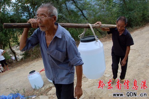 “走親戚最貴重的禮物就是送水。”一楊姓村民稱,他在城里上班,78歲的母親還在村中居住。100多天來,他每周都要來為母親送水,此外,遠房親戚來看望母親或走訪寨中親人時,都會背來大小不一的桶裝水來當禮物。“水,比什么禮物都珍貴呀。”楊坦言。