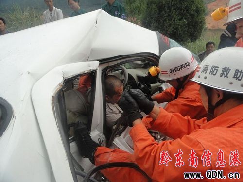 兩車相撞致兩人被困 錦屏消防成功救援(圖)