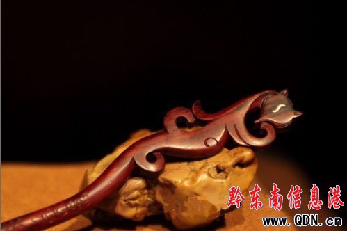 黎平木雕藝人顧超創辦了黎平縣侗鄉木雕有限公司,利用淘寶網、雅虎拍賣等網絡銷售方式,將自己制作的紅木仿明清家具,侗族鼓樓、風雨橋模型以及各種木雕工藝產品銷往各地。特別是發簪、木雕手串等精湛的手藝制品,更吸引了日本、歐美等國家和地區的收藏愛好者,他們紛紛通過網絡購買。圖為木雕藝人顧超的手工雕刻發簪“九霄美狐”。(周志光)