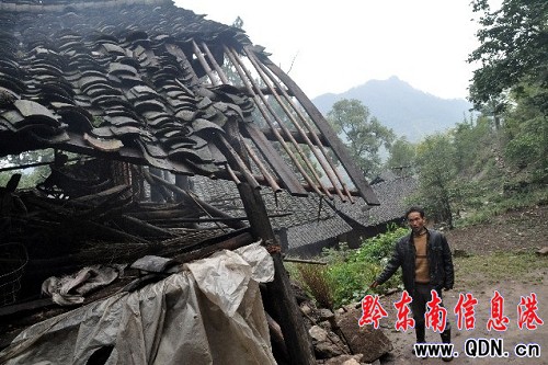 走了數(shù)百米,遇見了村莊,不少的石塊被隨意堆放在路邊,甚至在路坎下的陡坡面上,對民居構(gòu)成了極大的威脅。“前幾天,一塊數(shù)百斤重的石頭滾下坡去,打壞了村民田某某家的豬圈,幸虧沒有傷及村民。”一位隨行的村民介紹說,隨后,在他的帶領(lǐng)下,記者看到了被打壞的豬圈(如圖)。
