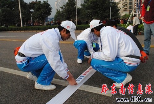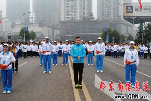 11月11日,2011中國•貴州黔東南超100公里跑國際挑戰賽在凱里民族體育場正式開賽。賽會期間,志愿者指揮中心全面負責賽會志愿者的指揮調配工作,通過科學策劃、精心組織,逐級落實,切實做到了指揮有力、行動迅速、保障有力,確保了首日賽事的順利進行。