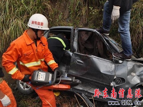 11月26日9時55分,天柱縣消防大隊接到報警稱,縣城往高釀鎮的公路上一輛轎車翻下山崖,4人被困,請求消防大隊立即出動救援。接警后,大隊迅速出動3輛車,11名官兵前往救援。