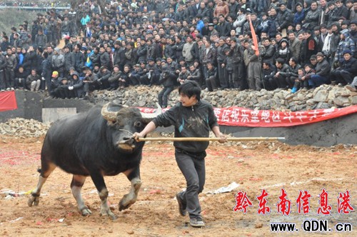 1月25日是農歷的正月初三,在榕江縣七十二寨的中心——樂里鎮斗牛場上,當地的侗族鄉親舉辦斗牛友誼賽,吸引了附近群眾以及外來游客共計2萬多人前來觀戰,熱鬧的場景給新春增添了喜慶氣氛。