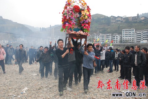 2月19日,從江縣物資局碼頭人頭攢動熱鬧非凡,貴州省從江縣第十四屆花炮節在這里隆重舉行。下午14時搶花炮正式開始,經過兩個小時的激烈爭搶,近萬人參加的搶花炮,象征官運的“金龍一炮”、象征財運的“玉龍二炮”、象征鴻運的“銀龍三炮”各有得主。
