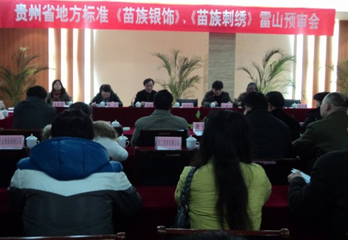 貴州省地方標準《苗族銀飾》、《苗族刺繡》文本已完成,為了保證制定的標準符合實際,黔東南州質監局、雷山縣政府于2012年2月22日在雷山召開《貴州省地方標準<苗族銀飾><苗族刺繡>預審會》,兩項標準順利通過預審,進入報批階段。