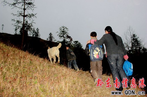 姚本蓮老師不放心吳才浪一個(gè)人走回去,就約上來學(xué)校支教的一位特崗教師陪她把學(xué)生送回去。