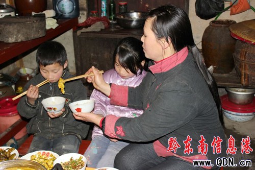 看著孩子們狼吞虎咽的樣子,姚本蓮老師心里酸酸的,很不是滋味。