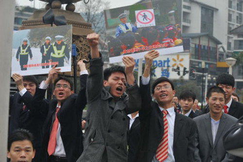 “支持你,啃雪哥!”一雙雙手高舉著“支持啃雪哥”的照片和標(biāo)語,“粉絲”們的呼喊聲此起彼伏。2011年初,貴州遭遇低溫雨雪凝凍災(zāi)害,為了節(jié)約每一秒時(shí)間,堅(jiān)守在抗冰雪保暢通一線的綏陽縣公安局交警六中隊(duì)指導(dǎo)員黃新德就著雪團(tuán)啃干面包,“啃雪哥”就是網(wǎng)友們在感動之余送給他的昵稱。