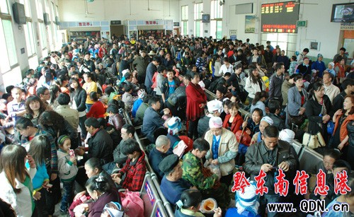 4月1日,成都鐵路局凱里火車站清明節客流高峰正式啟動。今天,貴州鐵路36個主要客運站200多個售票窗口全部啟用,并借助帖子、媒體、網絡和微博等發布節假日期間列車開行信息,確保廣大掃墓旅客平安到達。(姜澤鵬 攝)