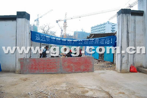 居民堵工地打橫幅——“強烈要求還我道路”