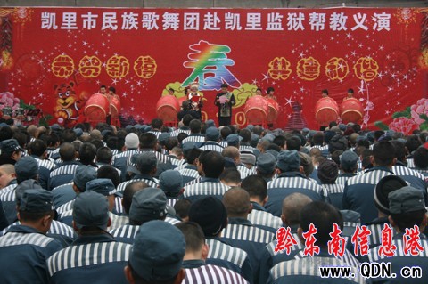本港訊 (吳興良 記者 劉仙 攝影報道)近日,凱里市民族歌舞團40多名演職人員赴凱里監獄進行一場大型演出活動,向監管改造戰線上的監獄人民警察致以熱情慰問和新春問候,對監獄在押服刑人員傾情幫教義演,獻上了一道豐盛的藝術大餐,帶來了歡笑,同時也帶來黨委政府和社會的支持及關愛。