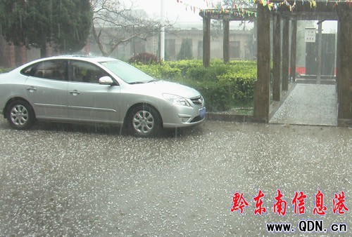 本港訊 (朱法科 特約記者 陸書明 攝影報道)3月1日,因受局地強對流天氣的影響,黎平縣德鳳鎮、敖市鎮、中潮鎮從16:55至17:09遭遇冰雹的襲擊,正在勞作和出門在外的人們都措手不及。據黎平氣象局工作人員的測量,冰雹顆粒最大直徑達24毫米。目前災情正在進一步的統計之中。圖為17:05黎平縣委門口正在下冰雹的情形。