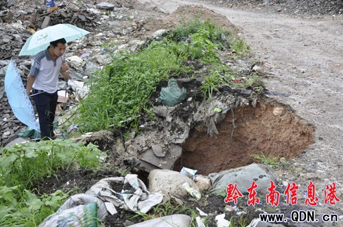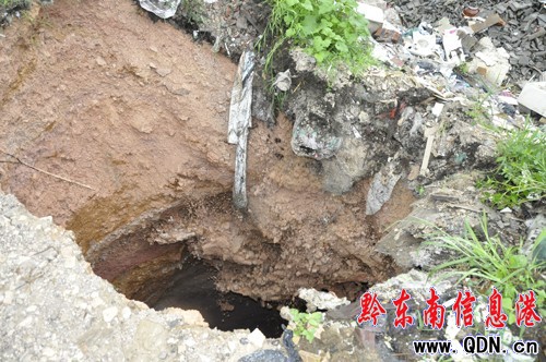 知情者蔣先生告訴記者,早晨他上班路過時就發現了路邊的這個“陷阱”,當時洞口直徑約50公分,他感到奇怪,還特意到洞口附近去看了看,豈料他還未到,洞口對面就嘩啦一聲,大量沙土落了下去,他嚇了大跳急忙跑開,以后再也沒有膽子去看了。