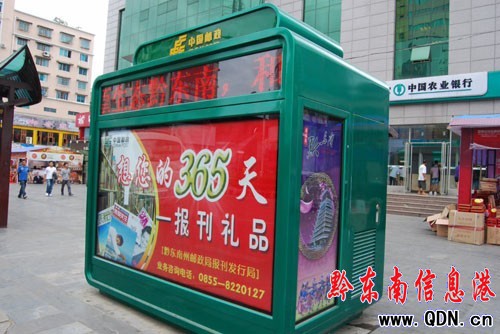 據(jù)悉,這種多功能報(bào)刊亭造價(jià)在10余萬(wàn),目前,除了貴陽(yáng)市外,全省每個(gè)地州各只有一個(gè),我州郵政部門計(jì)劃在兩年內(nèi)在凱里市普及這種報(bào)刊亭。