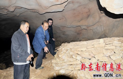 本港訊 (張維軍)近日,岑鞏縣文史工作者在調查搜集文物史跡資料時,分別在該縣天馬鎮云門洞和水尾鎮馬家寨三桂洞洞內,發現分布面積達2萬余平方米的古代煉硝遺址。據有關專家初步查證,這兩處遺址均具有軍事意義,其中云門洞遺址,除六盤水大硝洞煉硝遺址外,是目前國內發現的單洞煉硝規模最大的煉硝遺址,國內罕見。