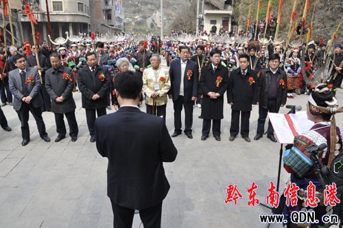 2月20日下午,“貴州東昇”2010中國(guó)•凱里甘囊香國(guó)際蘆笙節(jié)迎圣笙儀式在甘囊香蘆笙堂祭祀臺(tái)舉行。貴州省人大常委會(huì)原副主任楊光林、梁旺貴,州委常委、州政協(xié)主席、凱里市委書(shū)記楊正明及凱里市四大班子領(lǐng)導(dǎo)出席儀式。