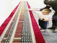 △日前,由山西省珠算心算協(xié)會、太原晉商博物館主辦的“晉商算學家王文素與珠算文化”專題展覽在晉商博物館開展,F(xiàn)場展出了上百件年代不同、造型各異的算盤。其中,6米長、227個檔位、1598顆算珠、可供12人同時使用的“全國最長大算盤”,由668架算盤組成的木制藏書樓“丹楓閣”等幾件展品最為引人矚目。