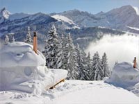 Whitepod位于瑞士的阿爾卑斯山的腹地,冰屋的內室充滿了創造力,燃木壁櫥,豪華的床鋪,完備的浴室一應俱全。