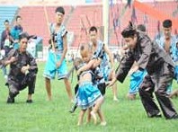 △在貴州體育館舉行的第九屆全國少數民族運動會表演項目頒獎晚會上獲悉,黎平縣選送的《頌北》獲得第九屆全國少數民族運動會表演項目一等獎。這是繼第八屆全國少數民族運動會獲得一等獎后的又一殊榮。來自黎平的60名侗家兒郎真實再現了緊張、勇猛、激烈的侗家傳統摔跤場面。其中,年僅3歲的楊皓然和陳永智兩名摔跤隊員正是參加此次運動會年齡最小的兩名運動員。(周志光 楊國祥)