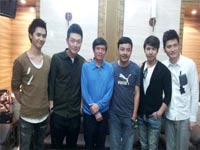 歐弟(右二)現(xiàn)身與“天天兄弟”一起拍起“全家福”
