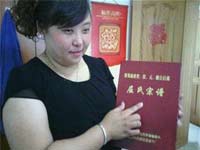 昨日成都一家粽子店打出“屈氏粽子”的招牌,老板娘還自稱是屈原72代后裔。圍觀者絡繹不絕,大家都好奇:“真跟屈原有關系?”面對圍觀的市民,“屈氏粽子”的老板娘屈慧君總會淡定地回答:“我是屈原的第72代后人,有家譜為證。”(見下圖)