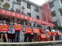 6月17日,天柱警方在該縣燈光球場舉行贓款贓物發還儀式(見下圖),將近期在偵破案件中收繳的現金、金銀首飾等贓物發還給被盜市民。據介紹,這些被發還的贓款贓物總計價值是60多萬元,其中現金有20多萬。而在發還的面包車中,失主李運華的一輛特別引人注目,因為這輛車新車以4萬多元買進,被盜時被盜賊以500元轉手,“二販手”則又以1000元再次轉手,賺了500元。后來,此車被警方發現系贓車后沒收。(羅茜)