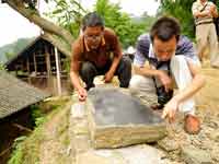 岑鞏縣思陽鎮岑豐村坐落在龍江河沿岸一偏僻山村,與鎮遠縣江古鄉毗鄰。近日,岑豐村封神組發現了一塊刻有字跡的青石碑,經該縣文化部門有關工作人員現場對碑文進行辨認(見下圖),這竟是清朝嘉慶十三年的石碑,距今已有200余年歷史。工作人員推斷,封神組當時或許就是一條重要商旅交通要道,不過還需要進一步研究鑒定。(楊政權)
