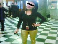 近日,新西蘭“新聞專線”記者勞拉因穿著金色跳舞褲參加謀殺案庭審而被法庭驅(qū)逐出場。當(dāng)天,25歲的勞拉身著黑色長袖襯衣,下穿閃光的金色跳舞褲,登記人員午間休庭前要求其離場(見下圖)。勞拉抱怨說:“我當(dāng)時坐在桌前,又沒人能看到。”